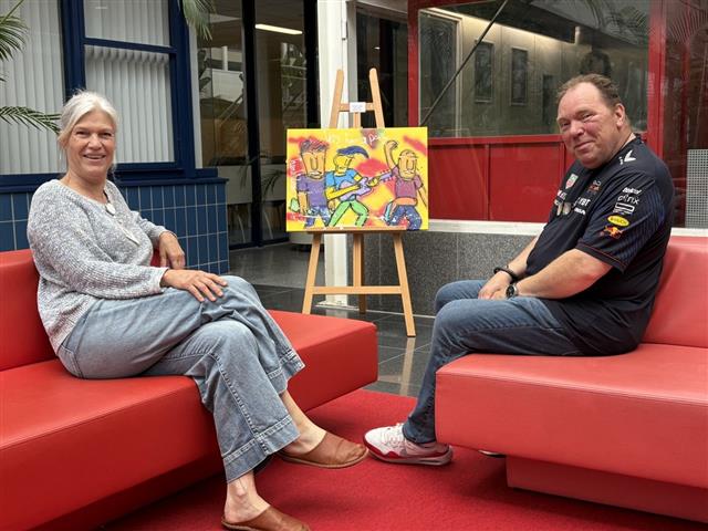 | Expositie schilderijen in Dijklander ziekenhuis Hoorn Kunstenaar Henk Veen exposeert in het Dijklander ziekenhuis locatie Hoorn voor de van drie maanden tot eind maart 2024 met zijn kleurrijke en sprekende schilderijen. In gedachten vliegt kunstenaar Henk Veen mee met zijn geschilderde vogeltjes en andere beestjes die overal zijn gulle lach laat zien in de hoop een smile terug te krijgen. De bekende kunstschilder strijkt overal met zijn vrolijke en kleurrijke collectie schilderijen, vol verhalen en passie, neer op plekken waar men wel een lach en steun kan gebruiken, zoals deze maanden in het Dijklander ziekenhuis locatie Hoorn. Zo'n acht jaar geleden is hij zelf getroffen door verstoppingen in de bloedvaten in zijn hoofd waar hij hersenschade aan over heeft gehouden die lijkt op de gevolgen van een beroerte. Met een pot verf en kwast stond hij vertwijfeld boven zijn lege doek, waar hij de confrontatie kreeg dat hij niet meer wist hoe hij moest schilderen. Met een leeg hoofd zonder fantasie en ongecontroleerde bewegingen, ging hij terug naar de basis, waar de “Brillies” zijn ontstaan. Met zo min mogelijk prikkels en vertrouwde herhalingen leerde hij zijn hersenen de uit elkaar gevallen verbindingen weer terug te laten connecten en hebben hem in die periode doen overleven. Na een periode van revalidatie, heeft hij door moeten knokken om weer te kunnen schilderen en weer de dagelijkse dingen zelf te kunnen doen en mobieler te worden. Hij weet maar al te goed hoe moeilijk het is als je lichamelijk tien stappen terug moet doen, hoe je humor en een lach nodig hebt om door te kunnen vechten. De kunstenaar heeft ontdekt dat revalidatie topsport is zonder voorbereiding. “Door het vertellen van het verhaal van de bekende “Brillies”, hoop ik een ieder te doen helpen met als men het even niet meer weet, terug te gaan naar de basis, waar je jezelf weer terug vindt en verder weer vooruit kan”, aldus de kunstschilder. Sinds deze maand sieren zijn schilderijen, tot half maart, de wanden van het ziekenhuis. In een ziekenhuis kom je niet altijd voor je plezier en daarom wil hij graag iedereen die het nodig heeft, door zijn kunst, even te laten vergeten waar ze zijn. Het mooie is dat zijn kunst zelf het werk doet, want als je de mensen langs zijn werk ziet lopen, dan zie je veelal een glimlach en vaak blijven patiënten even staan. “Dat ik mijn boodschap voor steun en vrolijkheid kan overbrengen door mijn kunstwerken, dat is bijzonder. Daarom hou ik zo van mijn werk”, verteld de kunstenaar. In totaal hangen er 24 kunstwerken van Veen op de begane grond van het ziekenhuis. Marike van Rijn verzorgt er de exposities: "Het hele jaar door wordt er geëxposeerd, steeds drie maanden lang. Mooi dat wij dit keer kunstenaar Henk Veen bij ons hebben exposeren, want zijn werk maakt zichtbaar wat los bij onze patiënten, maar ook ons personeel. Het is vrolijk en uitgesproken werk met bijzondere verhalen, ook ik word er helemaal blij van." Locatie: Dijklander Ziekenhuis, Maelsonstraat 3, 1624 NP te Hoorn |