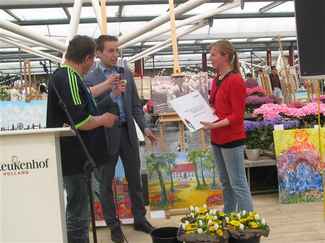 Gedurende het 4-daagse evenement Henk Veen Kunstplein, was er een grootse expositie van ruim 50 professionele kunstenaars die hun werk, maar ook hun kunst live op doek vertoonden. Onder toeziend oog van directeur Bart Siemerink, welke zichtbaar genoot, kon het publiek de kunstenaars in actie zien, de sfeer proeven rondom de kunstenaars en met ze praten over hun kunstwerken. Het contact met de kunstenaars zelf, de professionele opstelling van het plein, maakt dat het Henk Veen Kunstplein sfeervol en een uniek concept is en het publiek mee kan gaan in hun wereld. "De combinatie van het exposeren van vele verschillende kunstenaars met even zoveel verschillende stylen en de uitgeschreven wedstrijd, creëert een sfeer van een georganiseerd atelier, waar veel Keukenhof bezoekers speciaal deze week vanwege de aanwezigheid van het Kunstplein, hun weg richting het prachtige in bloei staande Keukenhof heeft gevonden", aldus jurylid, organisator en kunstenaar Henk Veen. De jury is tot de tot de volgende winnaars gekomen: Onder luid applaus en vol enthousiasme werden de prijzen uitgereikt en ontvangen en het prachtige en bijzondere vierdaagse wedstrijd en hoogstaande evenement afgesloten. |