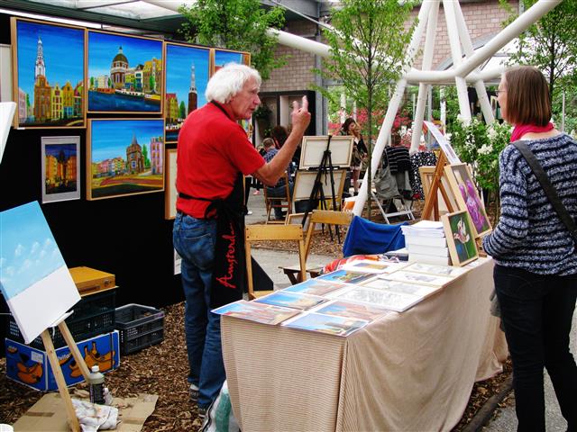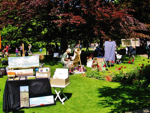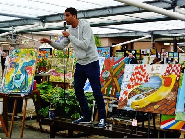 Het weekend 17 + 18 mei 2014, organiseert organisator Henk Veen i.s.m. Keukenhof, live action painting in Keukenhof. Dit houdt in dat je in het hele park kan live schilderen en jezelf en jou schilderij wat je live schildert, kan laten zien aan de bezoekers van het prachtige bloembollenpark. Je krijgt twee consumptiebonnen per kunstenaar aangeboden, evenals één toegangskaart en één parkeerkaart. Dit weekend is vrij live schilderen, zonder thema, dus geen wedstrijd. In tegenstelling tot de Kunstplein week, kan men niet exposeren, maar wel het publiek jou werk laten zien doordat je live schildert, op alle plekken in het park. Totaal weekend bedragen de kosten 50 euro (excl. 21% btw), in totaal 60,50 euro (incl. 21% btw). Zelf materialen, ezel en canvas etc meenemen. (eigen kosten). Interesse? Download het bovenstaande inschrijfformulier en stuur deze ingevuld naar het volgende emailadres: kunstschilderhenkveen.@chello.nl. Je krijgt via de email reactie van ons terug, waarbij de factuur, welke na betaling tevens bevestiging is van deelname. Locatie: Keukenhof, Stationsweg 166-A, 2161 AM Lisse De weekend worden als geheel pakket aangeboden (2 dagen), waarin de kunstenaar flexibel is welke dagen hij/zij komt live schilderen. Het totaalbedrag is voor de organisatie en inschrijving, ongeacht hoeveel dagen de kunstenaar aanwezig is. |